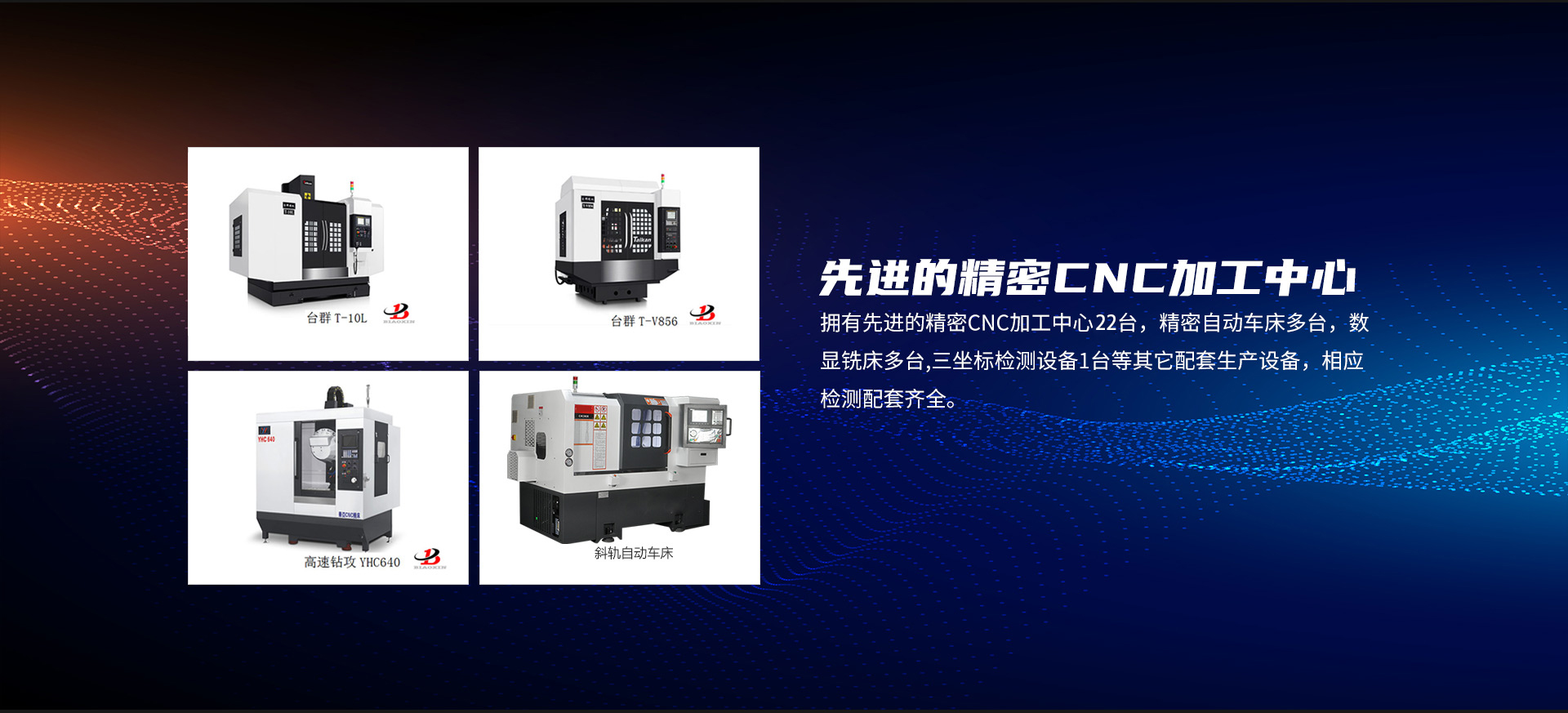 擁有先進(jìn)的精密CNC加工中心18臺,精密自動車床多臺,數(shù)顯銑床多臺,三坐標(biāo)檢測設(shè)備1臺等其它配套生產(chǎn)設(shè)備